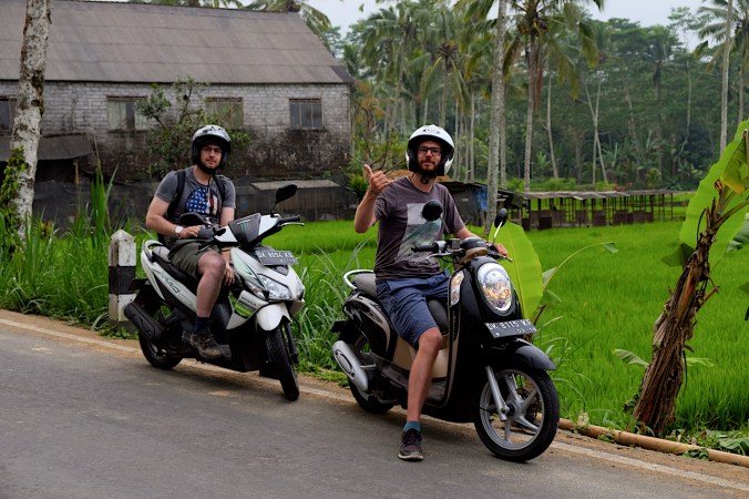 Die Leute am Strassenrand grüssen uns freundlich. Während wir einen kurzen Halt machen, hält ein junger freundlicher Indonesier neben uns. Woher wir denn kommen, will er wissen. Er lebe schon ewig auf der Insel, erzählt er uns. Er, der dick eingepackt dasteht, bekommt sein Schmunzeln nicht aus dem Gesicht als er uns fröstelnd an der Strasse stehen steht. „Ja, Bali kann auch kalt!“, meint er mit einem Lachen, wünscht uns einen schönen Tag und braust davon.