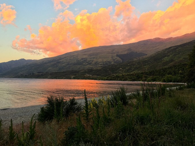 Die Lage direkt am Wasser wäre top, das Wetter hält, die Stimmung ist gut, bis, ja bis wir erneut mit den neuseeländischen Biester in Kontakt kommen. Sind Mücken schon eine Plage für sich, überbieten dies die hier heimischen Sandfliegen diese bei weitem. Schnell und einfach ist die Entscheidung weiterzuziehen gefällt und so kehren wir zurück an unseren Lieblingsort ganz in der Nähe der Stadt Queenstown, zurück an den Lake Hayes wo sich ein wunderbarer Free-Camping-Spot befindet. Auf einer grossen grünen Wiese parken wir unseren Bus mit Blick auf den See, kochen ein feines Znacht und geniessen die letzten Stunden in dieser malerischen Gegend.