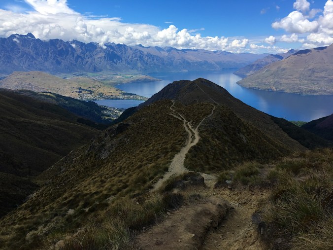 Ben Lomond ist das heutige Ziel. Der 1748 Meter hohe Gipfel, Hausberg von Queenstown, der vom Städtchen aus jedoch gar nicht zu sehen ist, bietet einen einmaligen 360 Grad Rundblick über die umliegende Berglandschaft. Könnte man den ersten Teil der Wanderung hoch zum Bob’s Peak mit einer Gondelbahn überbrücken, starten wir von unten und nehmen den kurzen aber steilen Aufstieg unter die Füsse. Der Bob’s Peak gilt auch als Freizeitberg Queenstwon, findet sich oben neben Café und Restaurant auch eine Rodelbahn, Bungee-Jumping, Ziplining, Mountainbiking und vieles mehr. Vielmehr als all dies gefällt uns allerdings was wir von hier oben aus zu sehen bekommen: einen wunderschönen Blick über die Stadt, den Lake Wakatipu bis hin zu den gegenüberliegenden Bergketten „„The Remarkables“.