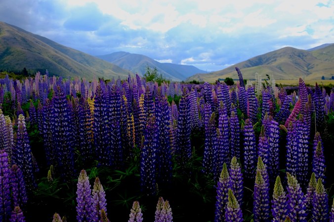 „Wir können uns wirklich glücklich schätzen, dass wir ihn doch noch zu sehen bekommen. Es ist fantastisch!“, meint unser Nachbar überschwänglich und mit voller Freude zu uns während er das Strahlen kaum mehr aus dem Gesicht bekommt. Da sie in den nächsten Tagen bereits abreisen und beim letzten Besuch schlechtes Wetter herrschte, war dies die letzte Möglichkeit den mächtigen Berg doch noch zu Gesicht bekommen. Wir freuen uns mit ihnen, ohne zu wissen, dass das eigentliche Highlight für uns noch bevorsteht. Bereits der frühe Morgen des nächsten Tages nämlich scheint bereits viel Gutes zu versprechen. Der Himmel strahlt in seinem reinsten blau und die Sonne glitzert kitschig über dem Lake Pukaki. Den See immer zu unserer Rechten fahren wir dem Ufer entlang dem imposanten Aoraki entgegen. Lupinen leuchten im schönsten violett, der angrenzende See strahlt königsblau während die schneebedeckten Berge des vor uns liegenden Gletschergebirges uns willkommen heissen.