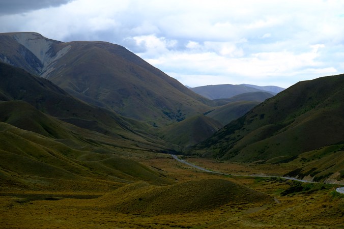 Sanft steigen die mit Tussock-Gräsern bewachsenen Hügel in die Höhe. Wir nähern uns dem Lindis Pass, welcher über einen Bergsattel zwischen dem Lindis Valley und dem Ahuriri River führt. Die hügelige karge Landschaft erinnert an die schottischen Highlands, reizvoll und märchenhaft.