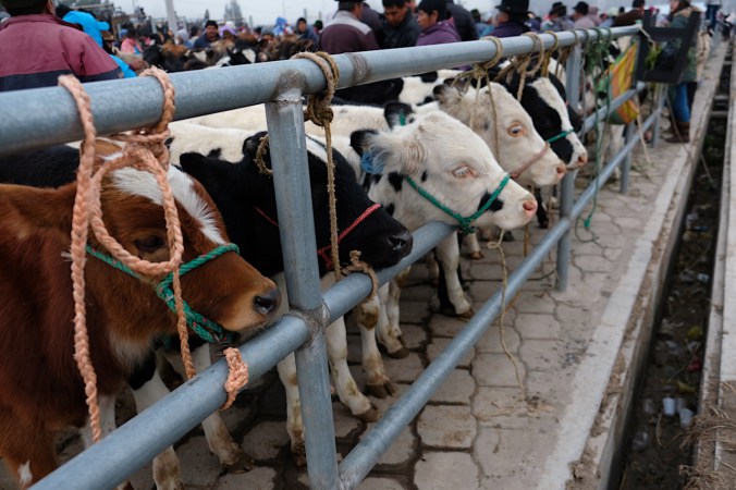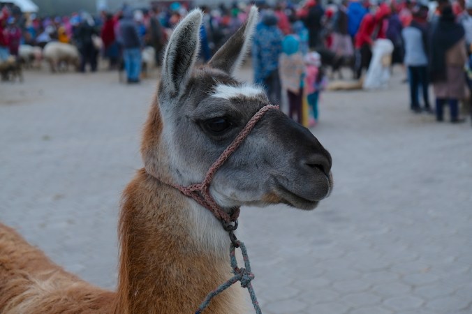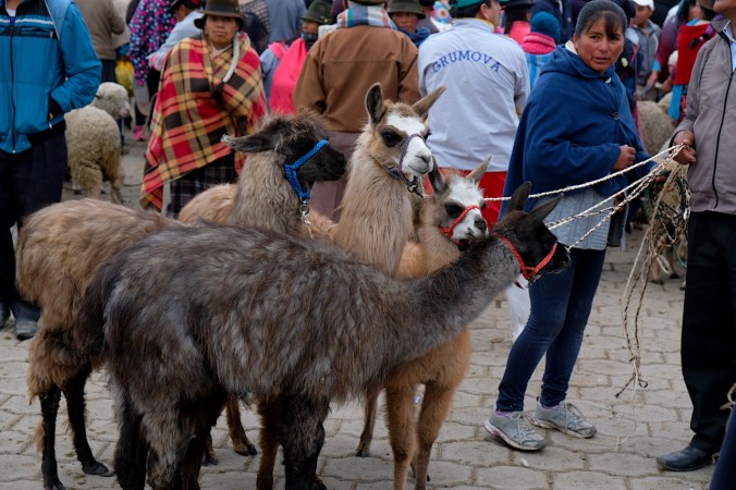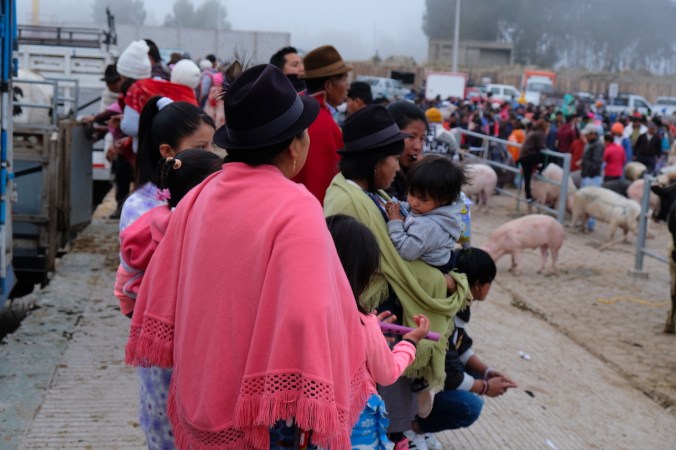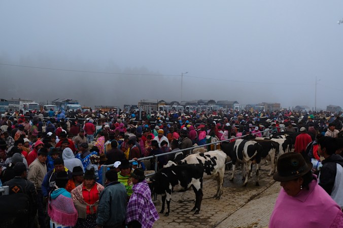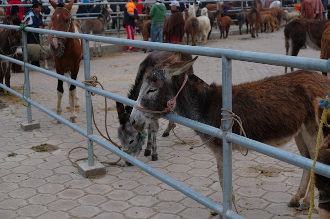 Vielmehr ist es aber auch ein Treffpunkt für Angehörige der vielen unterschiedlichen indigenen Stämme. Hier wird gefeilscht, gekauft, gehandelt und getauscht. Spannend für uns dabei ist definitiv die verschiedenen ethnischen Gruppen der hier lebenden Völker „kennenzulernen“. Eine Eigenheit, die diesen Markt nochmals um Welten authentischer macht, als seinen grossen Bruder in Otavalo. Auch finden sich hier ausser uns, keine weiteren Touristen. Dem hiesigen Markt mit der alltäglichen Ware allerdings statten wir nur einen kurzen Besuch ab, unser Ziel nämlich liegt ca. 1 bis 2 Km ausserhalb des Dorfkerns. Früh sollte man diesen Teil des Marktes besuchen, denn die Ware die hier gehandelt wird, ist meist schnell vergriffen. Warten hier doch Massen an Kühen, Schafen, Ziegen, Schweinen, Lamas, Alpakas und anderem Getier darauf, den Besitzer zu wechseln.